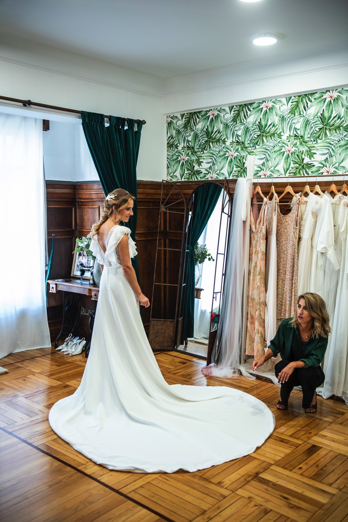 Aquí es donde tenemos el primer contacto con nuestras novias e invitadas; nos conocemos, vosotras nos contáis todas vuestras ideas, con qué estilo os sentís más cómodas y vuestras dudas. Nosotras os orientaremos en el diseño y los cortes que más os favorezcan, os enseñaremos nuestro amplio muestrario de tejidos, realizaremos el primer boceto del traje y os daremos un presupuesto.